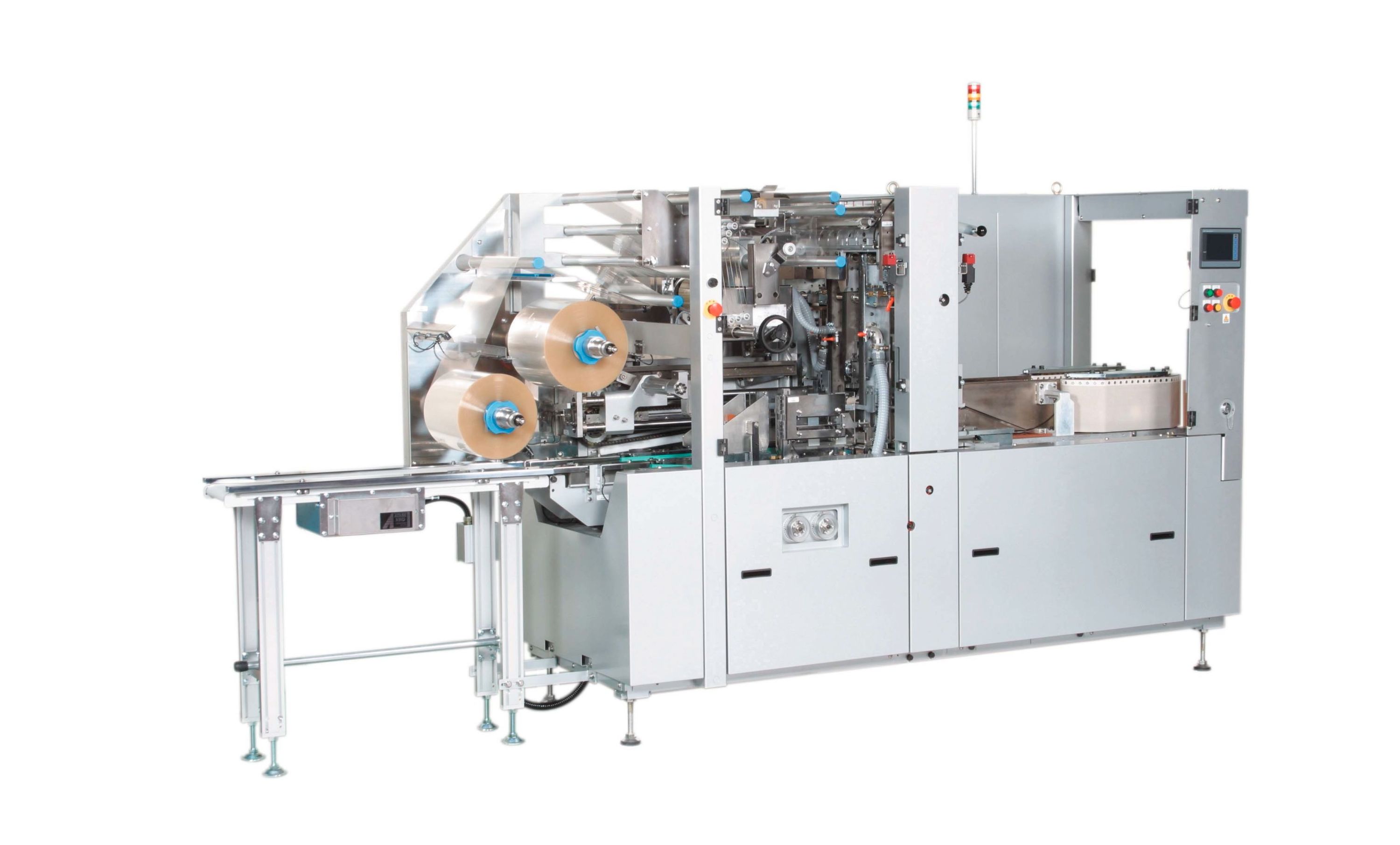 The desired number of cartons or packages are collated, wrapped with film and heat-sealed. Highly efficient, versatile wrapping machine.