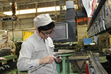 その後は「板金課」に移り、いまは精密溶接などを行いながら、課をまとめたり、後輩を指導したりという役割を担っています。