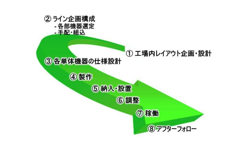 当社は包装機械メーカーとして機械のプロであると同時に、工場の生産合理化のためのよきアドバイザとしても活躍しております。機械という設備を100%有効に活用するためには、機械単体だけでは解決できない問題が多数あります。