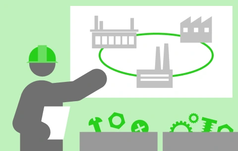 安全性や生産効率だけでなく、オペレーターの動線や資材の供給、物流の合理性や将来性までをも考慮した工場を提案します。生産資材の選定、オペレーターの指導に至るまで、目に見えない生産ノウハウも商品として提供することから、豊富な知識を持つ、経験豊かな上級技術者が担当します。