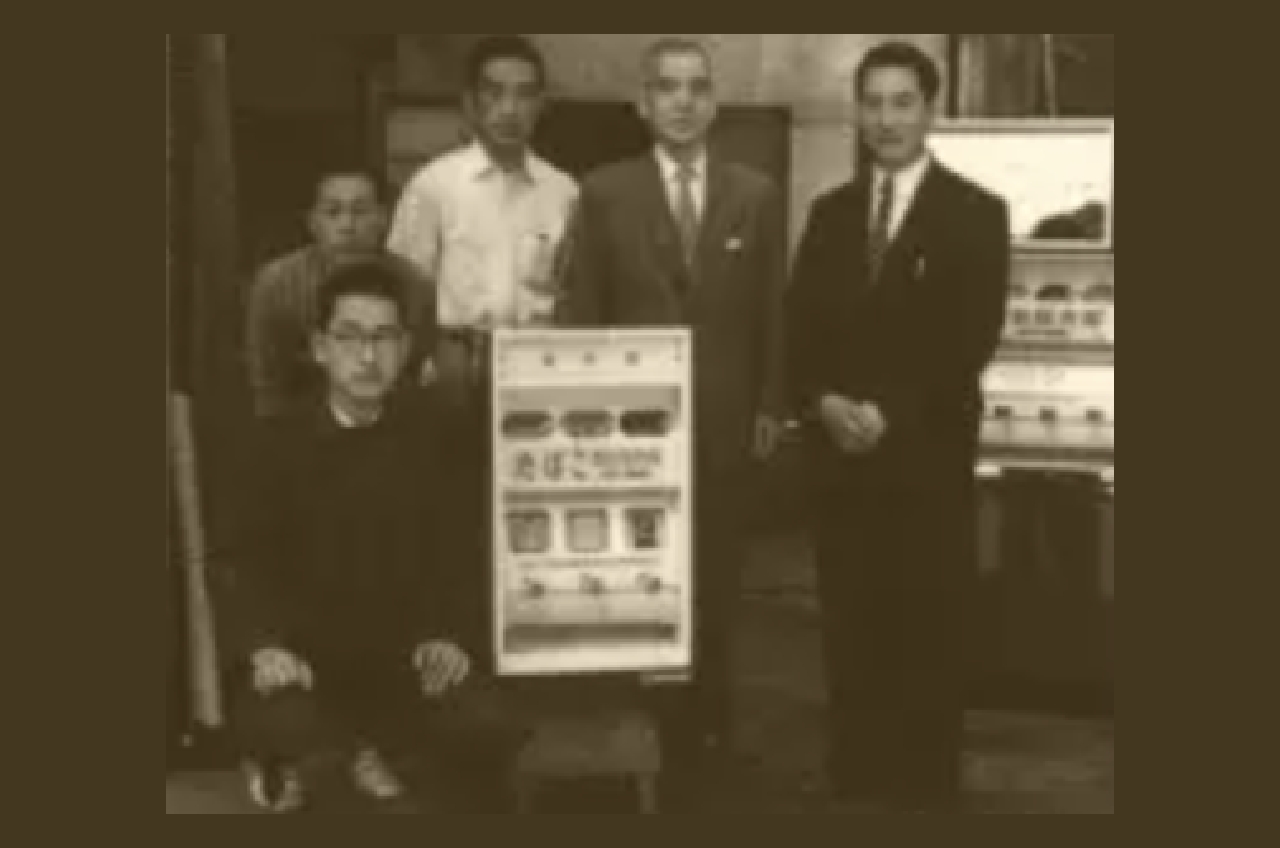 昭和30年代初め、社運を賭けた2大プロジェクトが進行する中、もう一つの開発プロジェクトが密かに進められていました。それは、「タバコ自動販売機」の開発。タバコ・マッチ関連という事業領域ではあるものの、技術やマーケットの方向性としては、他に比べ異質なものであり、企業としての在り方、方向性を模索していた、当時の京都製作所の奮闘と焦りを垣間見ることができます。