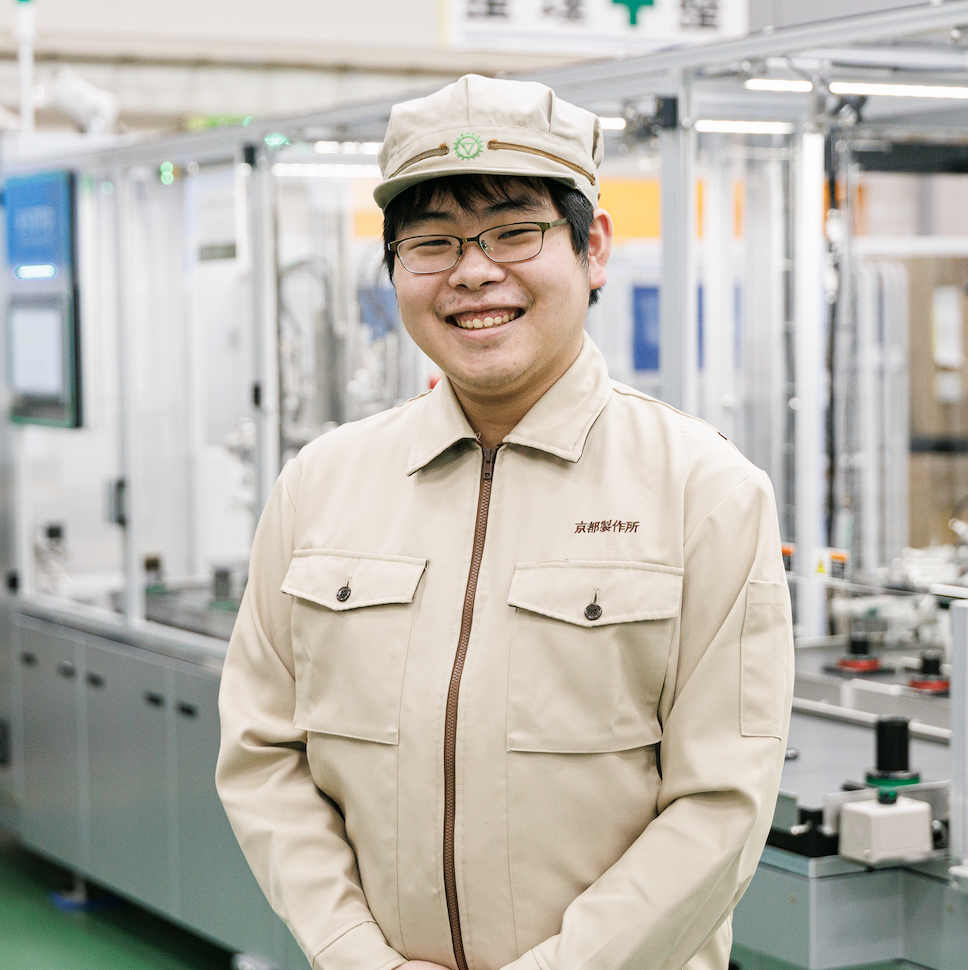 入社してまず驚いたのは、想像以上の研修の充実度です。電気設計に必要なPLC言語やMICKSという独自の制御技術はもちろん、機械設計・製造・部品調達などの部署にも1週間ずつ滞在して機械づくり全体を学ぶことができました。モーターやベアリングなどの仕組みを知り、機械加工や溶接などを体験できたのは、電気設計の仕事にも大いに役立つと思います。研修後は正式に電気設計課に配属され、医薬品包装機のソフト設計や現場対応、カップ麺を段ボールに詰めるケーサーのプログラミングといった実務に、少しずつですが挑戦させてもらっています。サークル活動でも部品の価格やルールに縛られることはありましたが、実際の仕事はさすがにシビアですね。限られた予算や納期の中で、求められる機能・性能を実現するプロとしてのスキルが必要ですが、先輩の皆さんは豊富な知識と経験で、同時に複数の案件をこなしています。中には10台以上の機械のプログラミングを並行して進めているスーパーマンのような人も。自分も将来はそんな技術者になりたいと思っています。