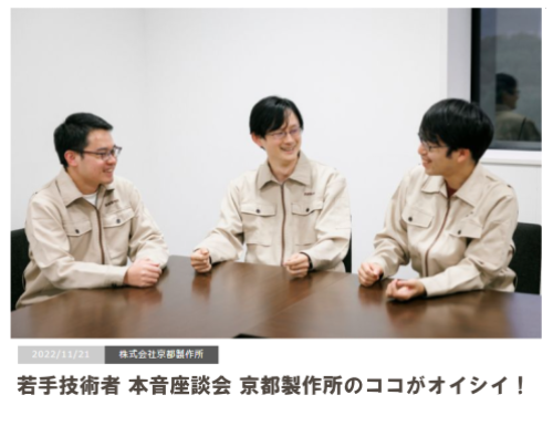 私たちは現在、今までに培った技術・ノウハウを生かしながら、従来のカテゴリーにとらわれることなく、様々な分野への進出を推し進めています。事業ドメインの広がりは、新たな課題・難題を私たちに突きつけますが、これに対し、社外でキャリアを積まれてこられた方々を迎え入れることで、より確実・正確・迅速に目標を達成し、新たなステージへと闊歩できる…そのために、キャリア人財のポテンシャリティーを最大限に活かせる環境を整えることが、京都製作所の最も大切な仕事だと考えています。